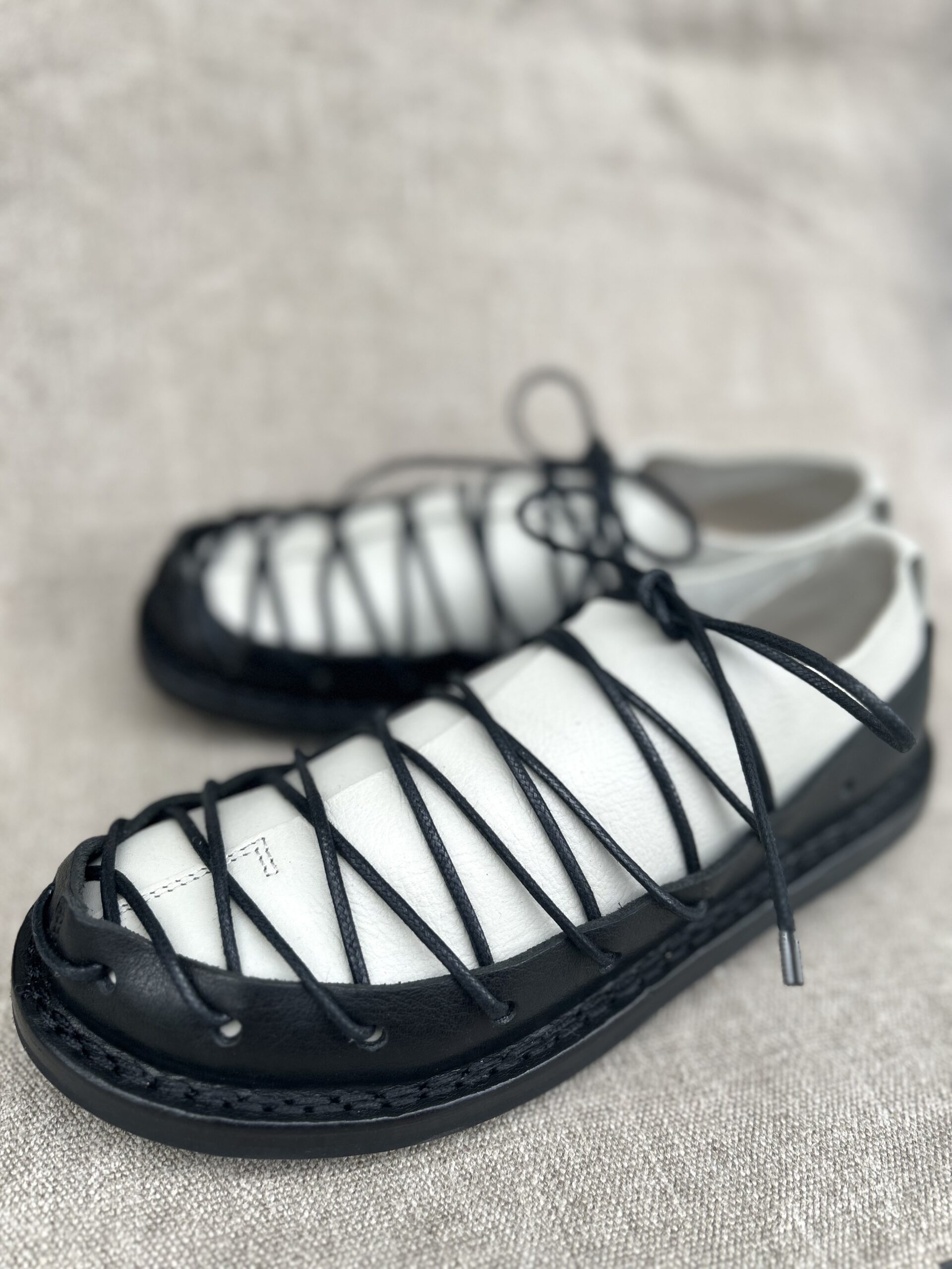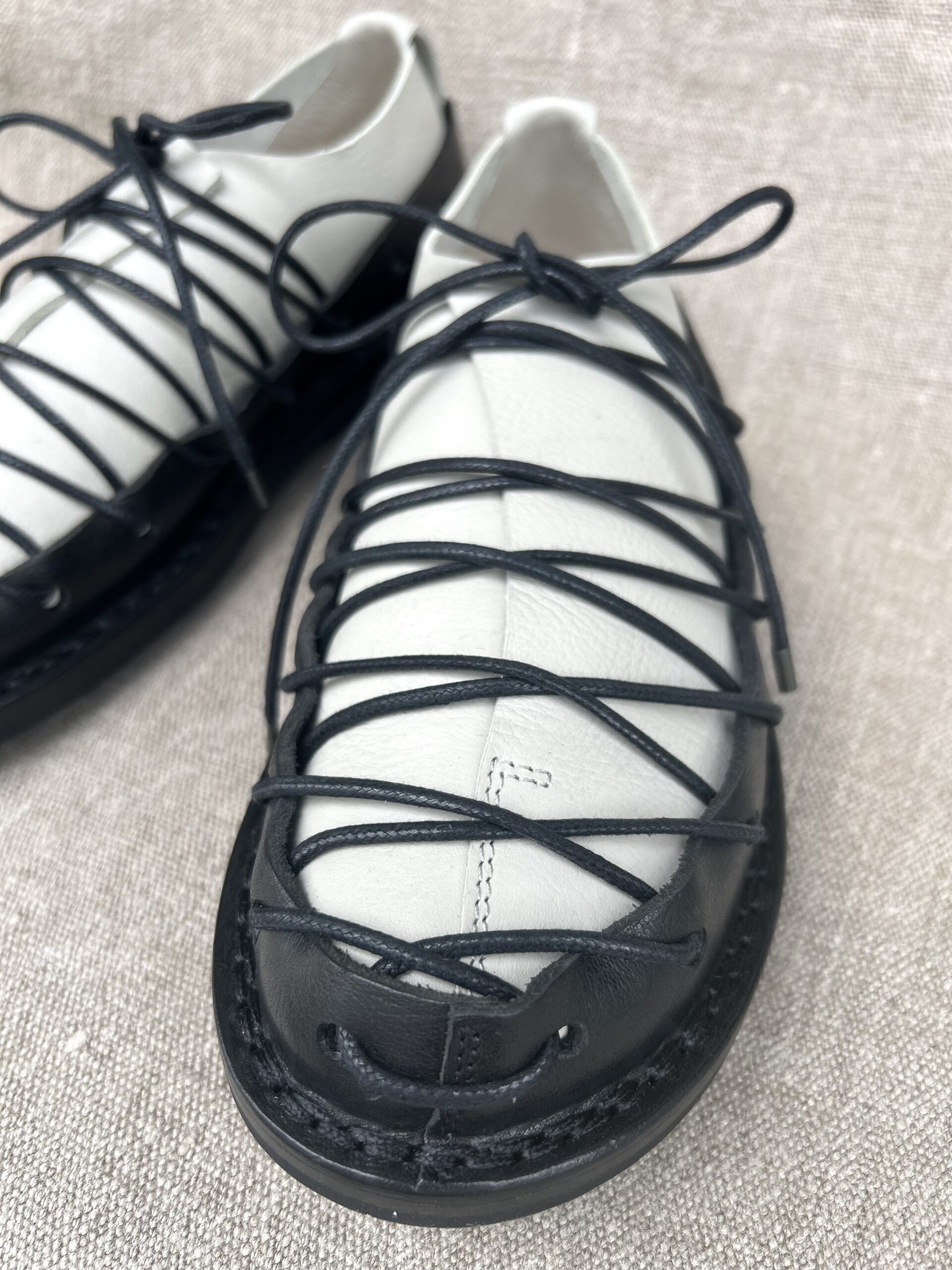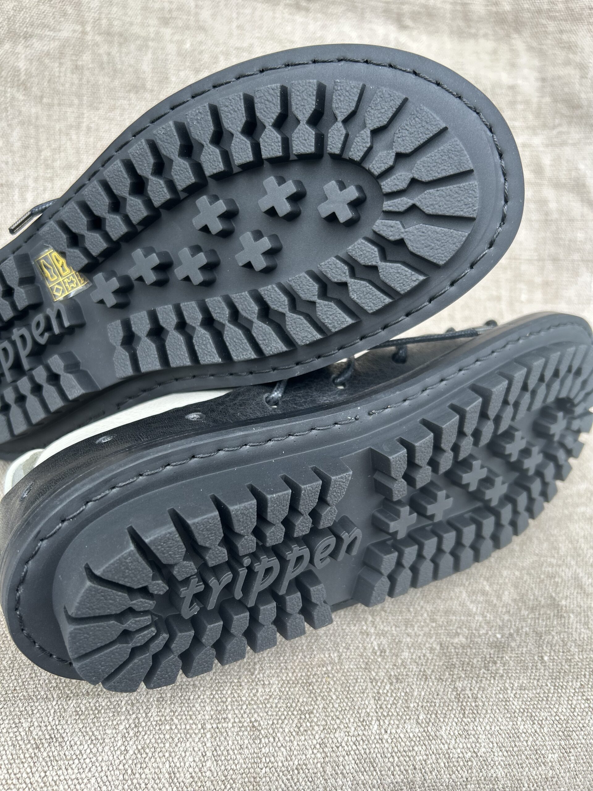 ソールは、個々のパーツが分解でき、かつ耐久性のある解剖学的に優れた形状の「Closed」コレクションの中でも最初期のモデル「Trippen」。背骨や背中をサポートするように設計されています。
