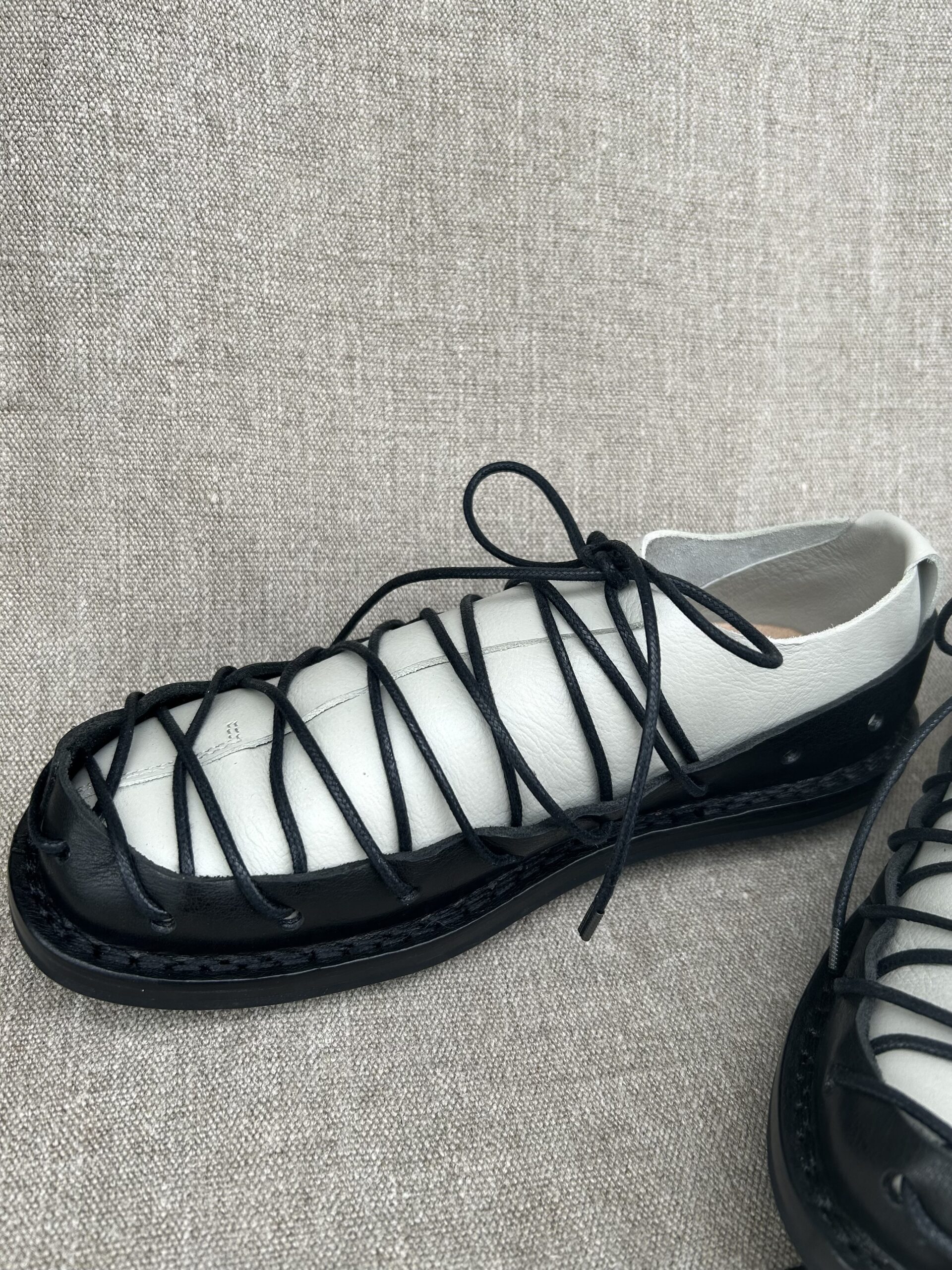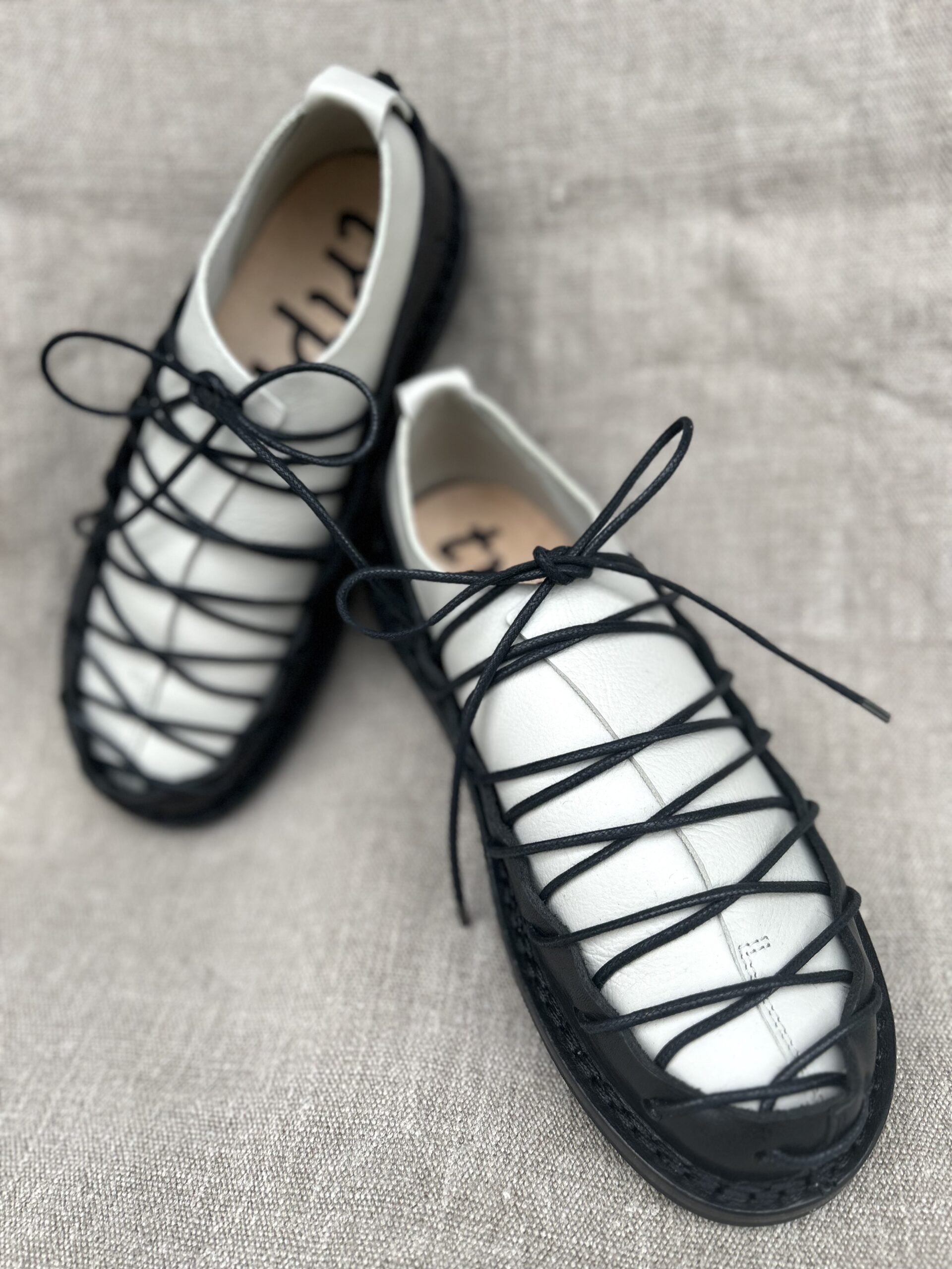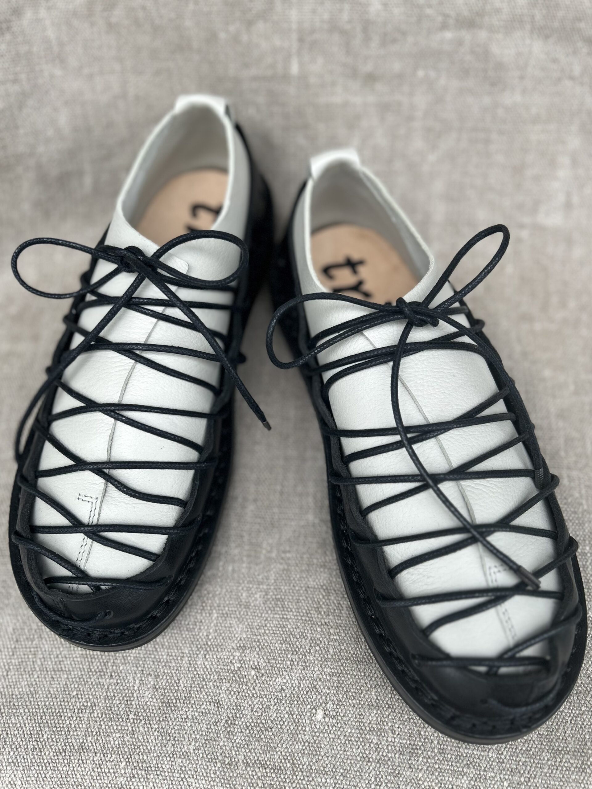 ソールは、個々のパーツが分解でき、かつ耐久性のある解剖学的に優れた形状の「Closed」コレクションの中でも最初期のモデル「Trippen」。背骨や背中をサポートするように設計されています。